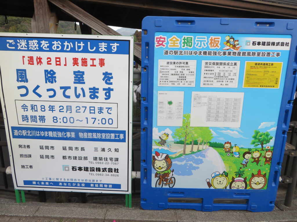 「道の駅北川はゆま」から工事のご案内(令和8年1月18日(日))