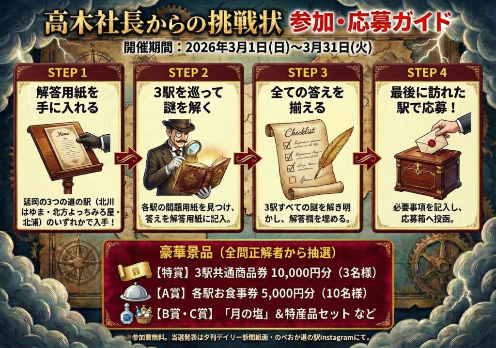当選者の発表は夕刊デイリー紙面、のべおか道の駅Instagramなどにて発表します。