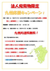 「道の駅北川はゆま 九州応援キャンペーン」の内容が一部変更となりました。(令和8年3月5日(金)) 送り先が九州内の法人限定となりました。指定の段ボール(100サイズ)を500円でご購入いただき重量10kgまでのお荷物( […]