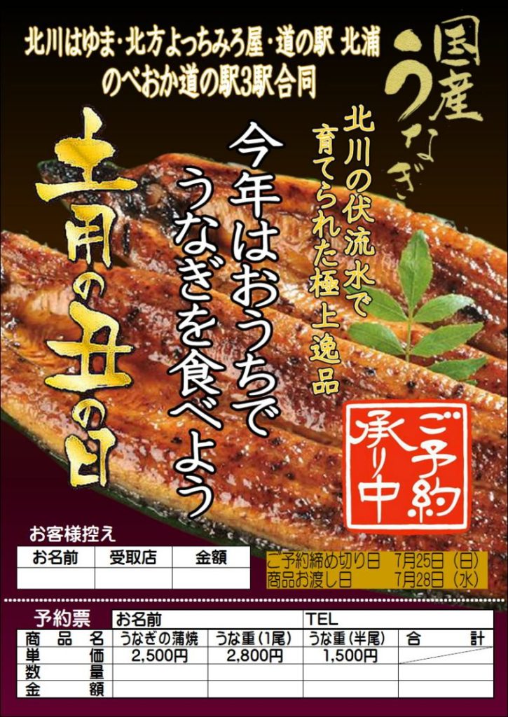 今年の土用の丑の日は北川産ウナギで決まり!!
