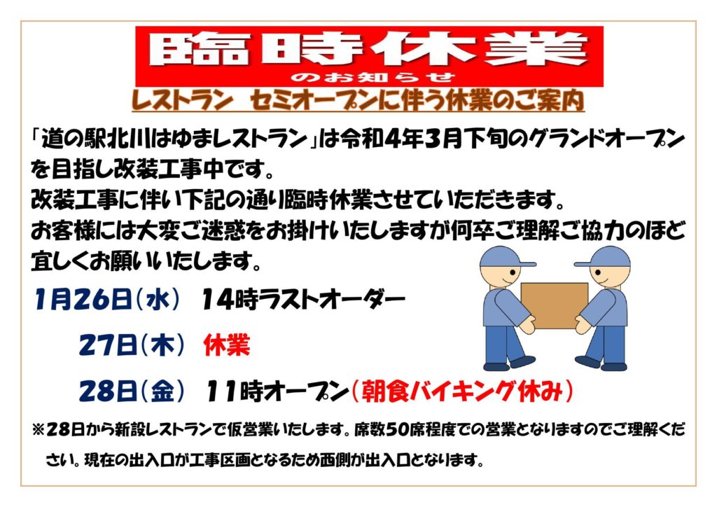 ※28日から新設レストランで仮営業いたします。