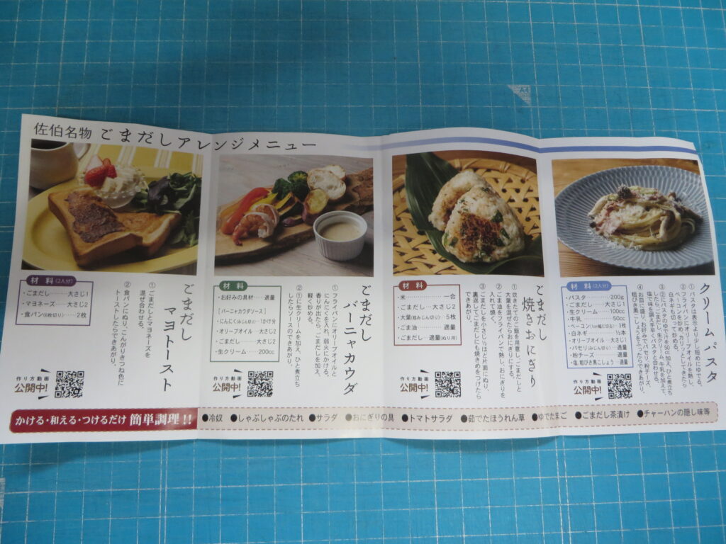 料理例)ごまだしうどん、ごまだしコロッケ、ごまだしマヨトースト、ごまだしバーニャカウダ、ごまだし焼きおにぎり、クリームパスタなど