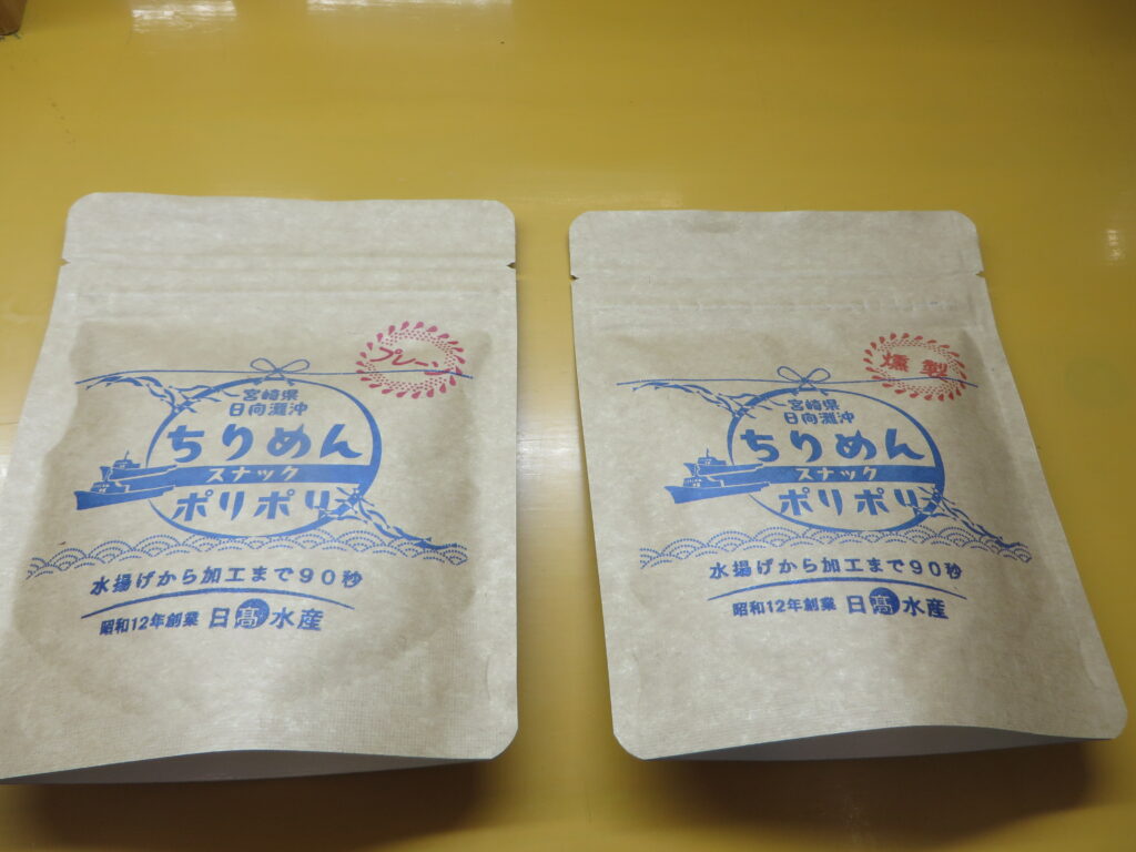 宮崎県延岡市の「日髙水産」より「ちりめんスナックポリポリ」2種(プレーン、燻製)入荷しました。