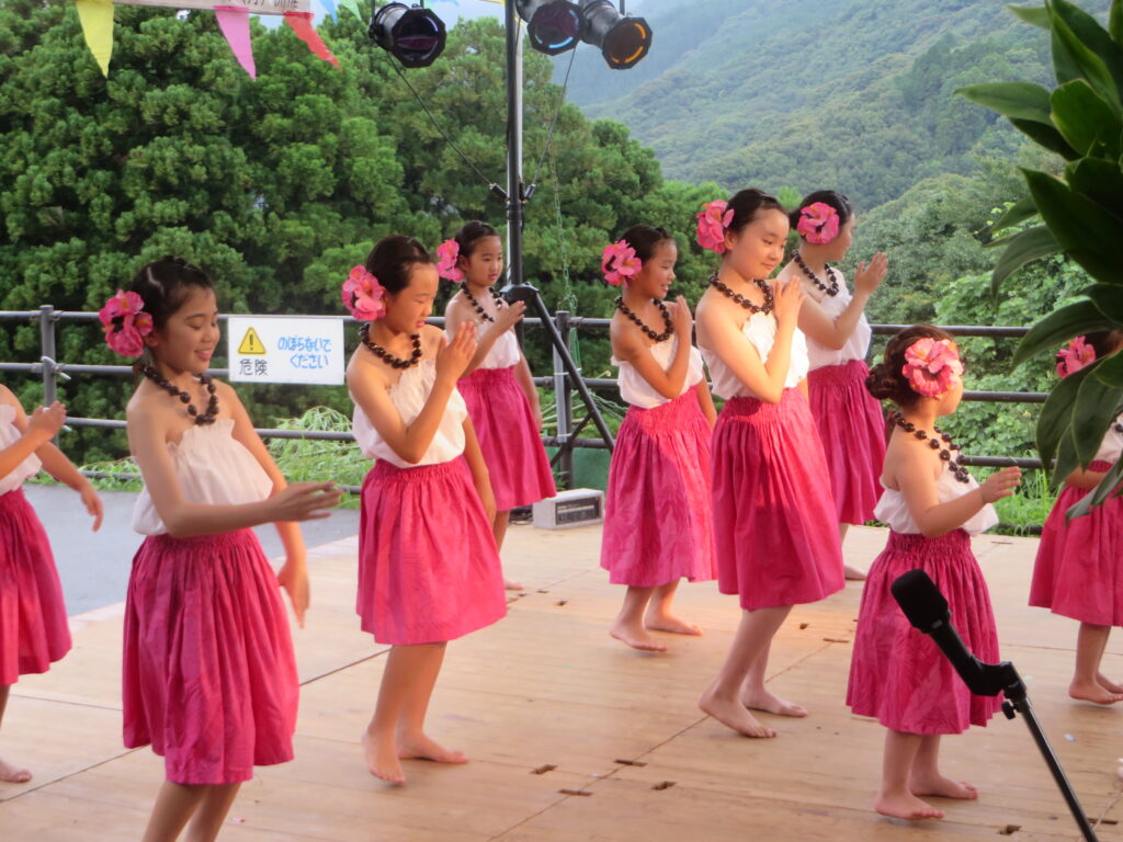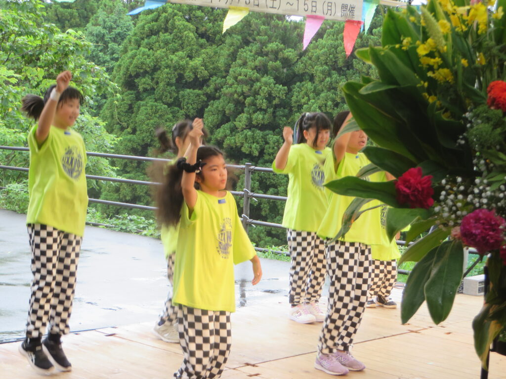 ①ステージ(延岡商業高校吹奏楽部、宇納間エイサー琉星會、Nonon、スタジオコスモ、リズムマスター)